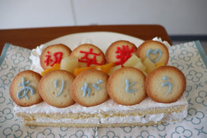 「みんなに喜んでもらいたい」「これまで一緒に過ごしてきた仲間や先生方へ感謝を伝えたい」そんな思いを胸に、生徒たちは声を掛け合い、協力しながらケーキ作りに取り組みました。