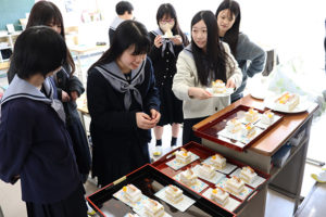 授業終了とともに、完成したケーキを手にクラスへ向かうと、他の授業を選択していた生徒たちは驚きながらも大喜び。教室は甘い香りに包まれ、笑顔あふれるひとときとなりました。