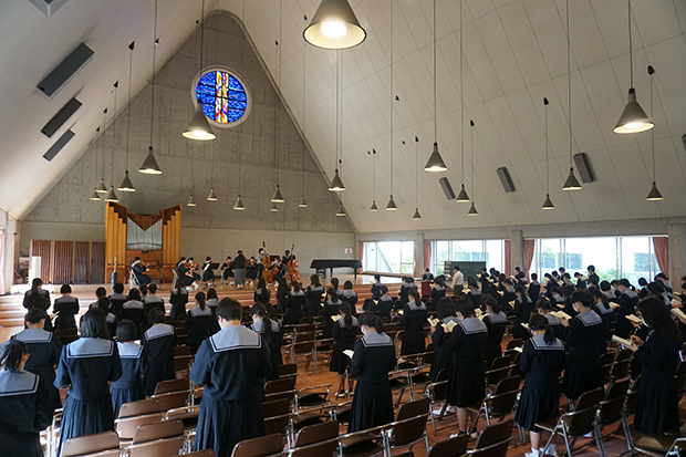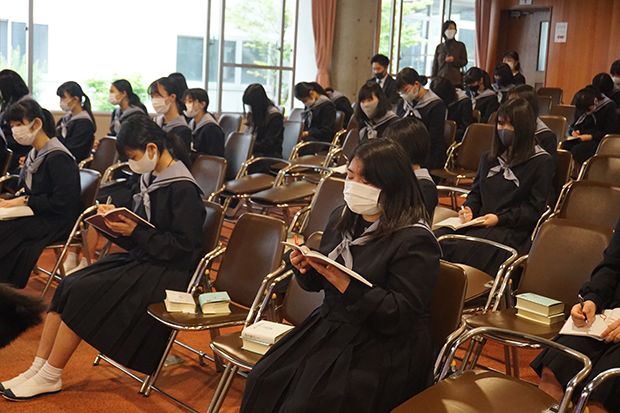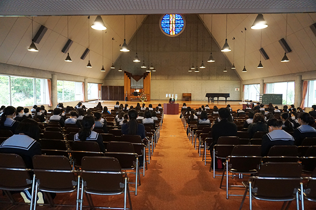 清和は新入生を迎えた次の週の月曜日から5日間「キリスト教教育週間」があります。毎朝の全校礼拝を少し長くして、清和が大切している考え方や価値観について考えます。校長がキリスト教や聖書について基本的な話をします。