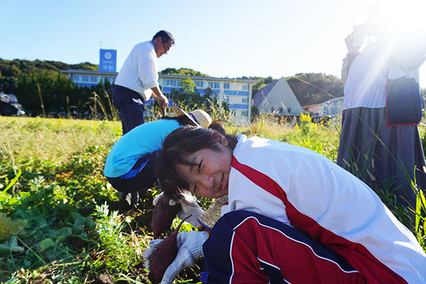 絶好の秋空の下、中学部「清和オーガニクス」は班に分かれて、1学期に植えたサツマイモの芋堀と、来年用の麦の種まきをしました。サツマイモの方は、昨年は土が固く大変苦労して掘ったのですが、今年の土は雨が多かったせいか比較的掘りやすかったと思います。ただ、収穫量は断然去年の方が多く、少し残念でした。このサツマイモは少しの期間保管してキュアリングをし、甘さを増したところでみんなで食べたいと思っています。