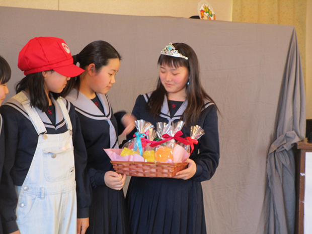 今日、清和では中学校卒業を今週土曜日にむかえる中学3年生を送る会をもちました。みんなで讃美歌を歌い、続いて各学年の出し物、中1からは「マリオのピーチ救出大作戦~中3おめでとう~」と題して劇がおこなわれ、かわいいマリオとピーチ、こわいクッパ先生の演技もありもりあがりました。中2からは「謎解き脱出ゲーム」という東館二階を大改造してつくった大がかりなゲームがもたれ、みんなで協力して謎ときをしました。中3からは1,2年生に手作りの素敵なブックカバーが贈られました。お菓子とジュースをいただきながらみんなで楽しく中3を送る会をもちました。中3卒業おめでとう~!