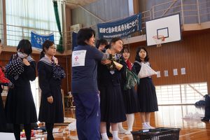 3月8日、学年末テストが終わった後、避難訓練と日赤の専門家に来ていただき応急処置の講習会を開きました。8年前の3月11日に東日本大震災が起こりました。その後も頻繁に大災害が続いています。それを他人事ではなく自分のこととして考えることが、私たちには求められています。それがわかりつつもついつい忘れがちになるのが私たちです。避難訓練は静かにスムーズに行われました。かかった時間もわずかです。いざという時もぜひそうありたいと願います。その後、体育館で日本赤十字社から専門家に来ていただき、応急処置の仕方をグループに分かれて学びました。気づかされることの多い時間となりました。