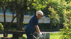同時進行で行われていたのが、山脇先生による中庭の芝刈りと草刈です。中庭はかなり広いのです。草刈の面積も相当あります。それを2日間で「隣の芝生は青い」状態にしてくれました。先生の体力と気力に脱帽です。