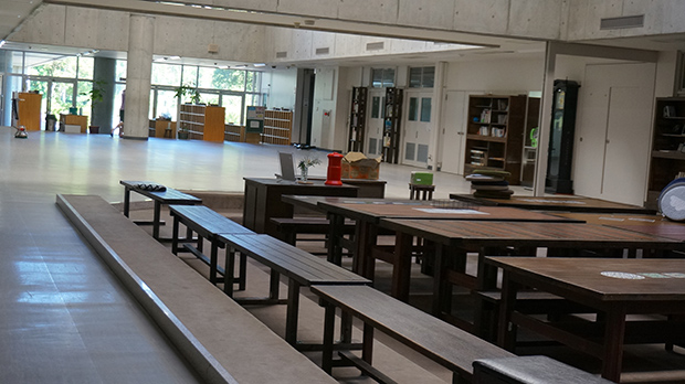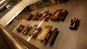 次に2階やその他の階の大きなテーブルやベンチを片付けます