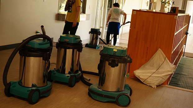まずポリッシャーやバキューム掃除機など重い道具をそれぞれの階に持って上がります。