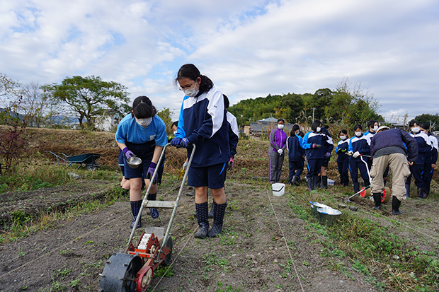 毎年恒例の小麦の播種を中学の「清和オーガニクス」と高2「教養」で行いました。