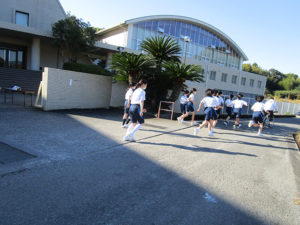 11/10日(月)~は朝の礼拝後に全校生徒で本番に向けての体つくりをしました。自分の体調と相談しながら歩いたり走ったりを毎朝20分間続けます。