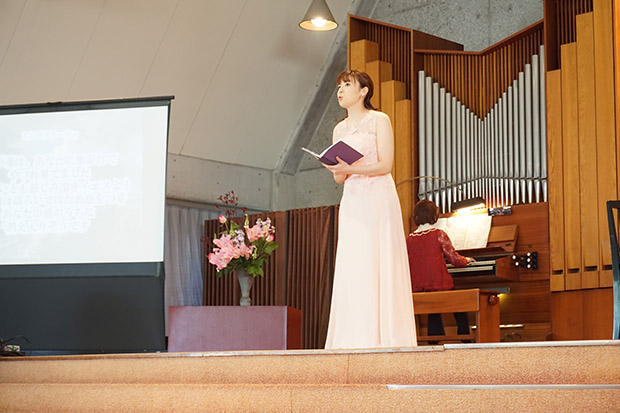 毎年この時期に行っている秋のチャペルデイ(特別講演会)に今年はソプラノ歌手の楢本愛実さんをお迎えしました。「神さまの贈り物」のタイトルで、歌とピアノの演奏を交えて、50分の講演を2回にしてくださいました。賜物探しの旅へ、試練は転機、すべてが一つになる瞬間、私の賜物発見、私に与えられた役目(使命)は何だろう、弱められて、新たな一歩を踏み出す、などをキーワードにお話しがすすめられました。やさしさと確信をもった一言一言に、チャペル全体が引き込まれるようでした。生徒と教職員にとって大いに励まされる時間となりました。また、お話の間に歌われる声に全体が包み込まれました。講演の最後のアンサンブル部との共演も好評でした。午後からは高3のクラスをはじめとする話し合いの場に臨んでくださいました。密度の濃い一日となりました。ありがとうございました。