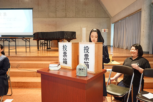投票する生徒たちも真剣に演説を聞いてそれぞれ投票していました。