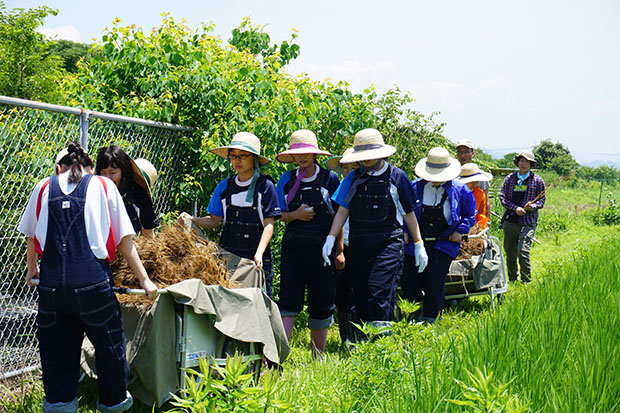 6月だというのにとても良いお天気の中、高2「選択教養」と中学「清和オーガニクス」は今年度の麦の脱穀をしました。
