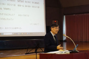 その後の講演では、「あっ、うたがうまれた」と題して、上島先生からユーモアたっぷりのお話をお聞きしました。