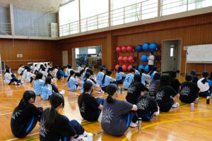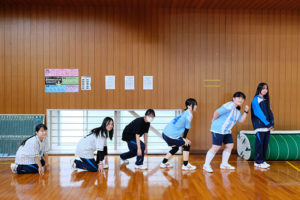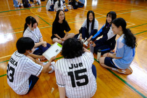 現生徒会長の横谷さんの挨拶から始まり、十字綱引きやクイズを通して交流を深めました。