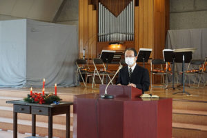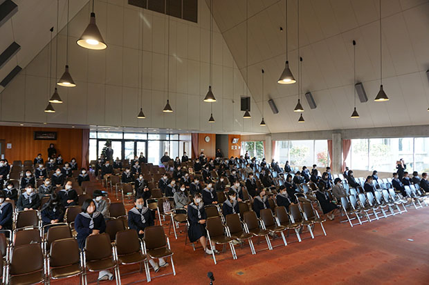 12月23日(水)2学期の終業礼拝を行いました。連日新型コロナウイルス感染症の感染者が2桁になる中での終業礼拝は、いつもの讃美歌をアンサンブル部の「ハレルヤ」の演奏にして、それを生徒たちが聴く形に変更しました。2学期は様々な行事が開催される学期ですが、コロナ禍で規制を受けて、清和が一番大切にしている「チャペルクリスマス」まで延期の形をとらざるを得ませんでした。生徒たちも一生懸命練習をしていただけに、とても残念な様子でした。本来なら「ハレルヤ」はそのチャペルクリスマスで、生徒・教職員が合唱する楽曲です。本番に合わせて緊張感を持って練習をしてきた成果を、今回は終業礼拝で演奏という形で披露しました。歌えない「ハレルヤ」を演奏だけ聴くことは清和にとっても非常に珍しい光景です。こうして、激動の2020年は終わろうとしています。2021年1月8日の始業礼拝には、誰一人欠けることなく元気に出席できることを心から祈っています。
